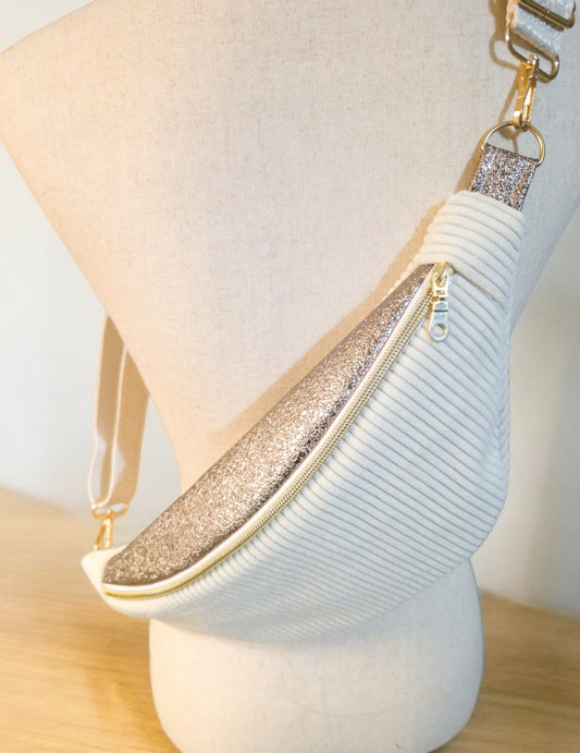 Sac Banane pour femme ou enfant – Velours côtelé écru & touche simili doré