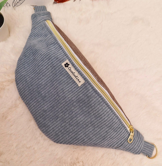 Sac banane en velours côtelé bleu ciel – Fait main en France