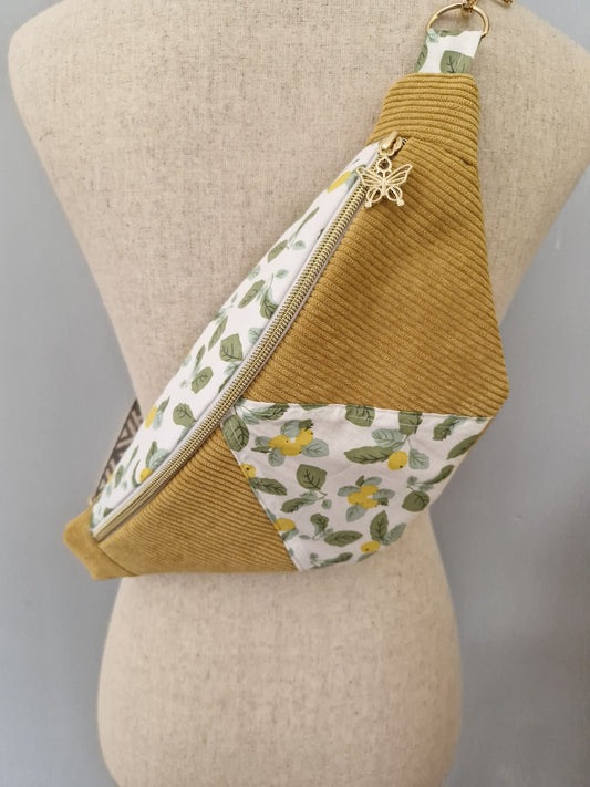 Sac banane citron & velours côtelé jaune – fait main en France , idée cadeau original