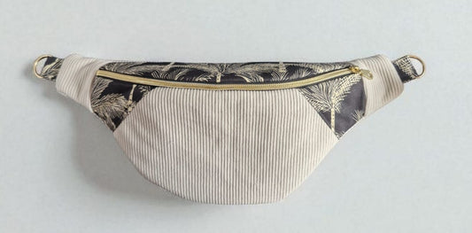 Sac banane en velours côtelé beige et tissu noir à motifs dorés – fait main en France, accessoire chic et pratique