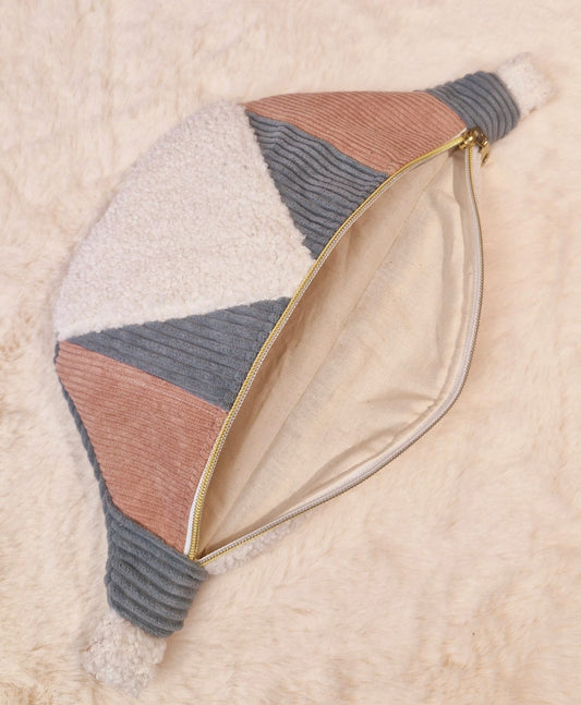Sac Banane pour femme Velours Côtelé & Moumoute – Rose, Bleu & Blanc