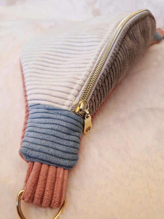 Sac banane femme en velours côtelé rose , bleu , gris , blanc écru intérieur petit coeur "DAISY"