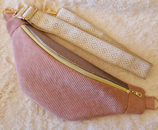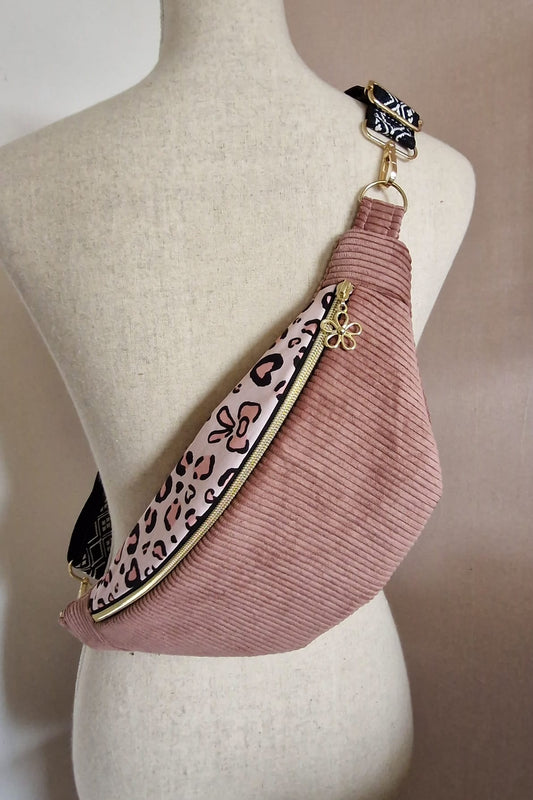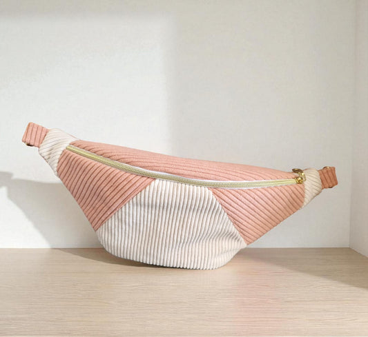 Sac banane femme en velours côtelé rose/écru – fait main en France, idée cadeau "JOELY"