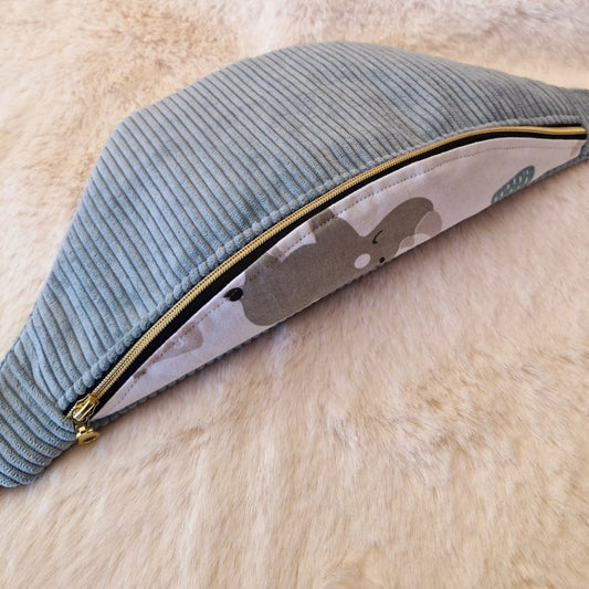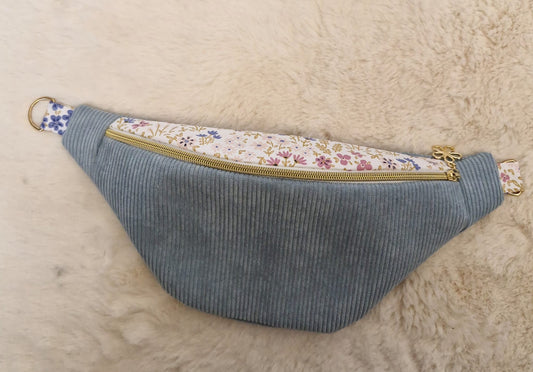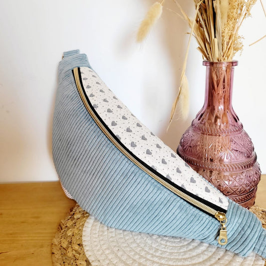 Sac banane en velours côtelé bleu ciel – Fait main en France