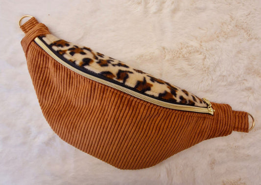 Sac Banane en Velours Côtelé Marron avec Rabat Léopard – Élégance Sauvage et Intemporelle "MEMPHIS"