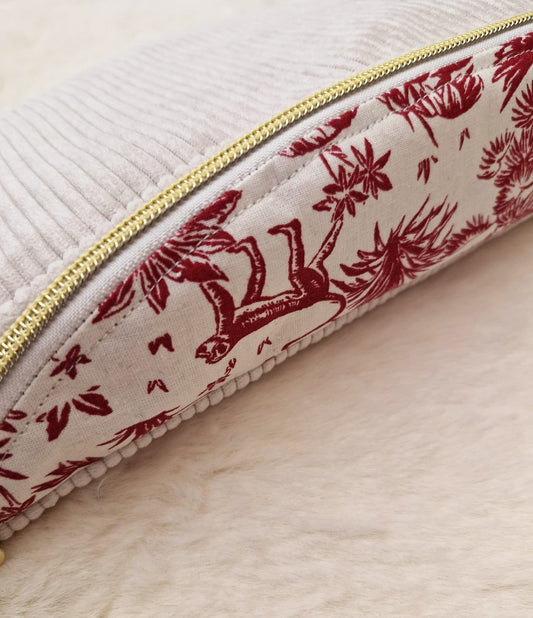 Sac Banane en Velours Côtelé Écru et Rabat Motif Savane Rouge – Un Look Sauvage et Élégant "YUNKEE"