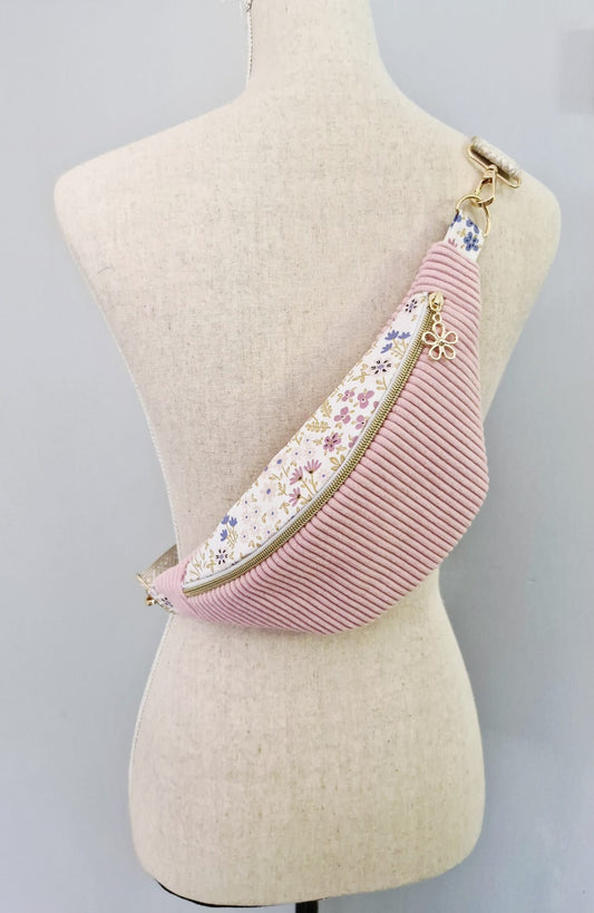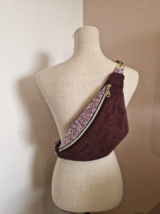 Sac banane en velours côtelé et motif fleuri – fait main en France , idée cadeau Noël