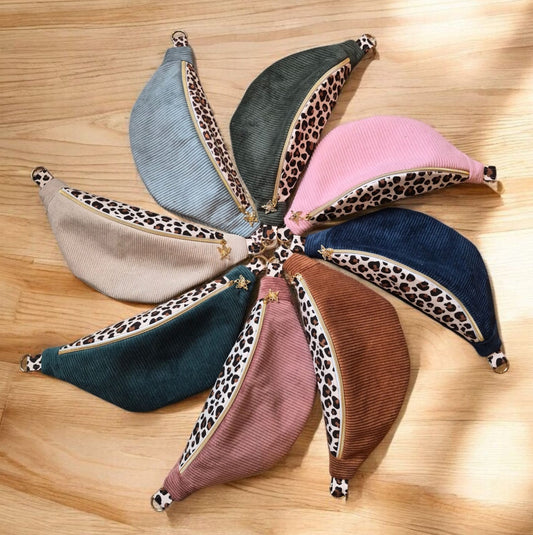 Sac banane pour femme en velours côtelé – léopard , idée cadeau , fait main en France